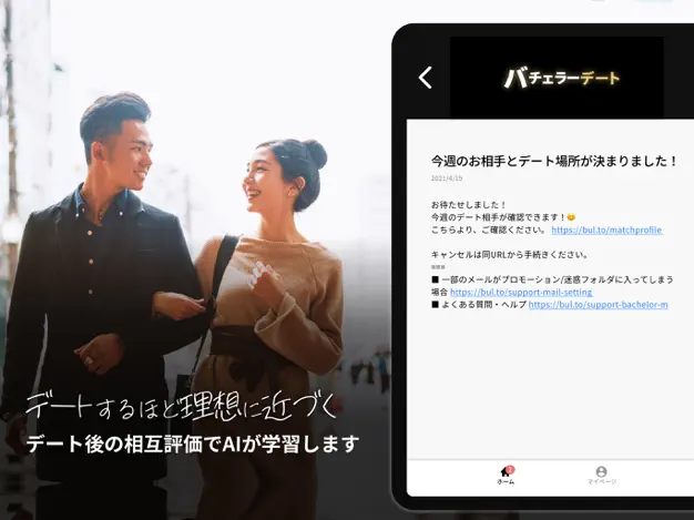 バチェラーデートは、恋活・婚活のための「探さずに出会える、審査制マッチングアプリ」です。